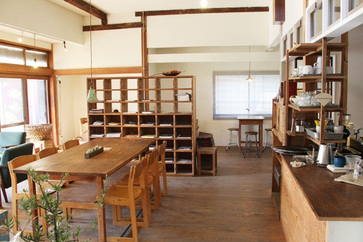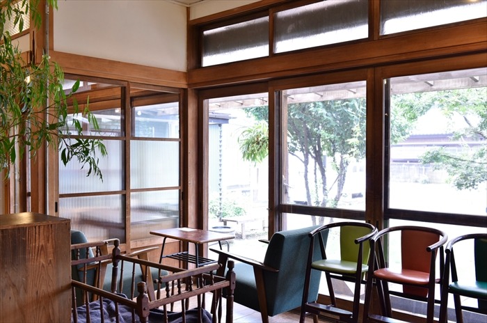 一軒家の一番広いスペースがカフェになっていて、天井が高く開放感があり、ちいさな子ども連れのお母さん達も安心してくつろげるのんびりした空間です。