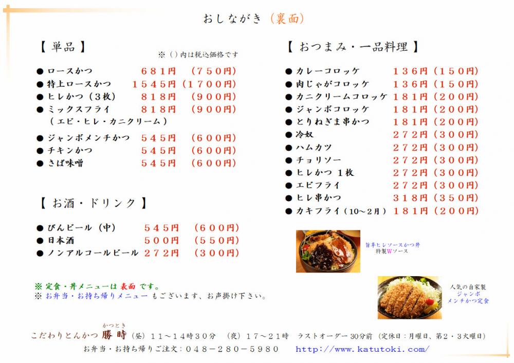 おしながき(裏面)